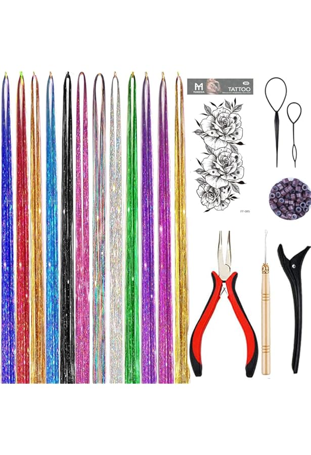 Amazon Com Dansee 48 Hair Tinsel 7200 Glitter Strands Extensions 12 Colors Set Sparkling Shiny Fairy Hair Dazzle Glitter Extensions Heat Resistant Synthetic Party Highlights Bling Hairpiece Kit Everything Else